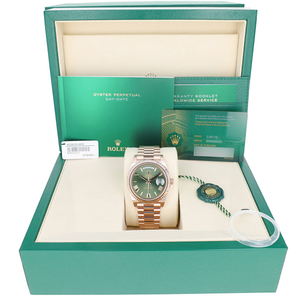 Rolex Day-Date 40 mm 228235 Olive Green NEW 2025 SEPTEMBER President Rose Gold